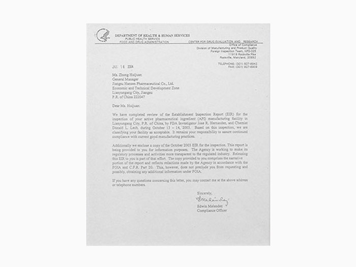 All production lines in Hansoh obtained GMP certificate "Development and Industrialization of Gemcitabine Hydrochloride for Injection, a New Oncology Drug" won the second prize of the National Science and Technology Progress Award Zefei (Gemcitabine Hydrochloride for Injection) was approved by the FDA