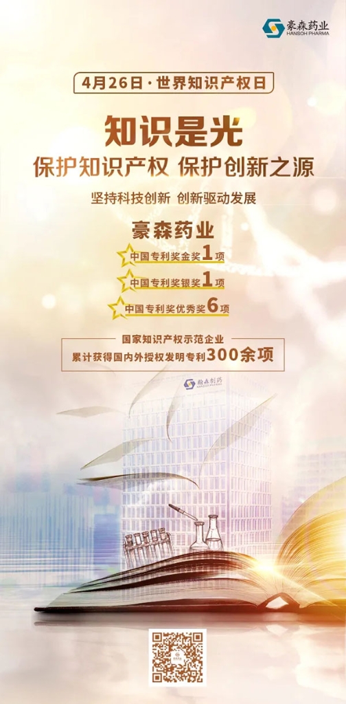 April 26, 2021 marks the 21st World Intellectual Property Day. Hansoh Pharma adheres to the innovation-driven development strategy. Since its inception, Hansoh Pharma has been well aware of the importance of independent innovation, and has attached great importance to IP development and accumulation. Relying on its solid R&D strength and sophisticated management system, the company has persistently tackled technical barriers in scientific research, developed a large number of key core technologies, obtained a batch of core high-value drug patents, promoted the development and upgrading of China's pharmaceutical industry, and brought benefits to the health and quality of life of Chinese people.