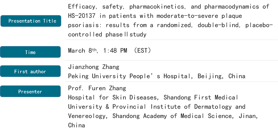 The results of phase 2 study further demonstrated the efficacy of HS-20137 for its treatment of psoriasis, and further supported the results observed in the Phase I study published in JAMA Dermatology[1].