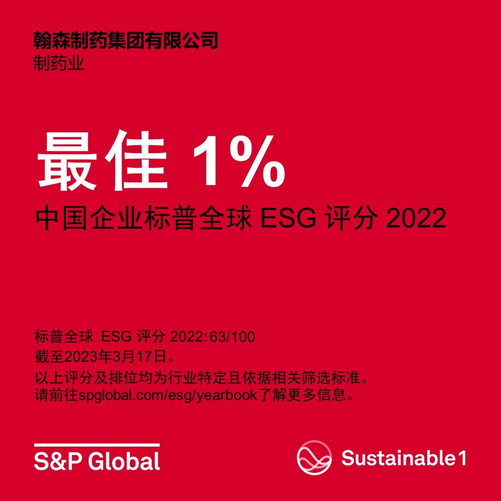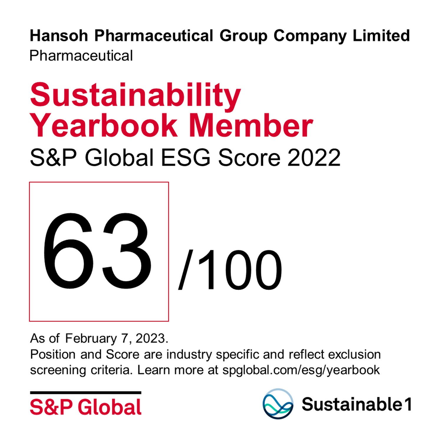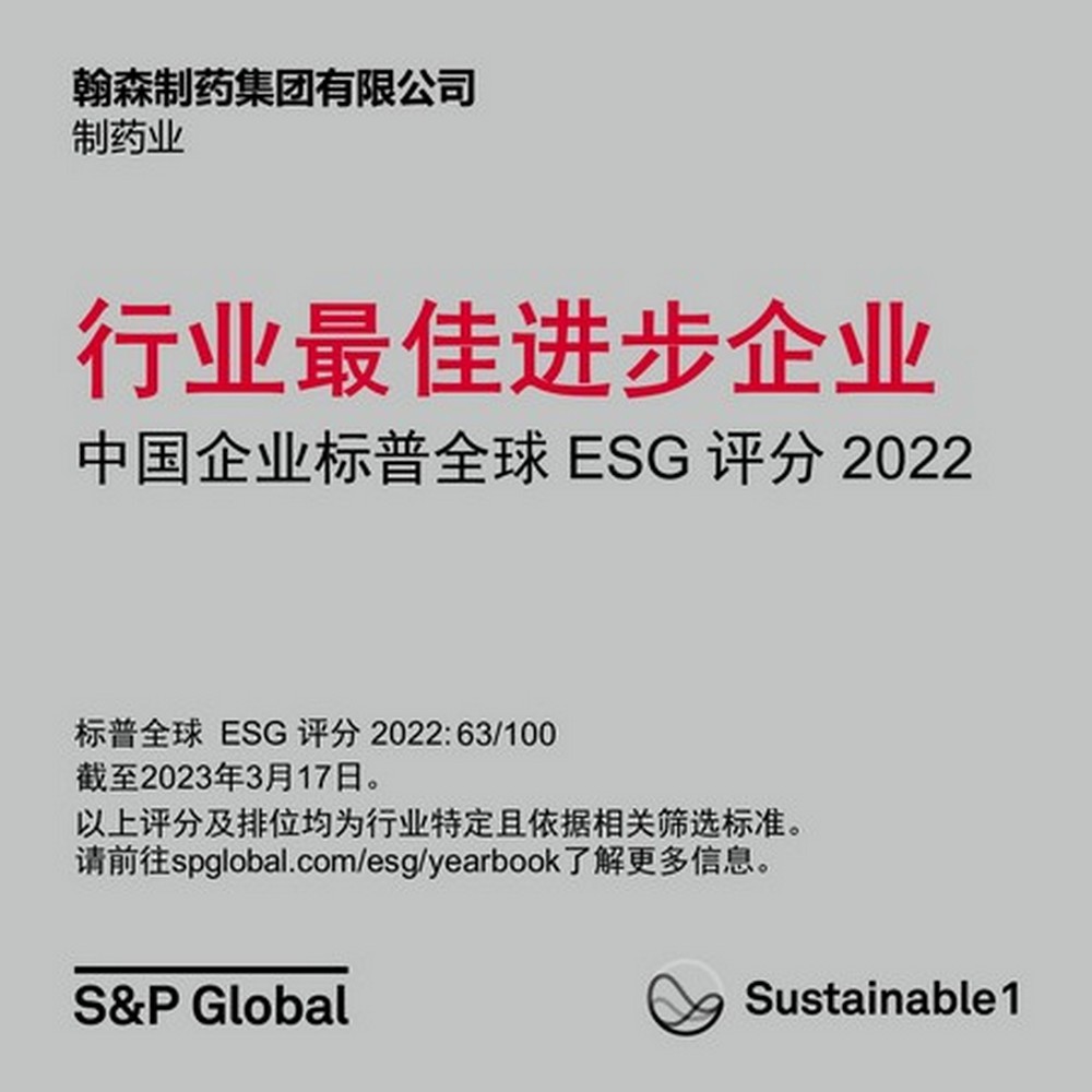根据年鉴评选规则,这两项成绩标志着皇冠体育博彩2022年CSA评分(63分)居于中国制药行业榜首,且为行业提升幅度最大的公司。此前皇冠体育博彩已成功入选标普《可持续发展年鉴》(全球版),成为中国大陆制药行业唯一入选公司。