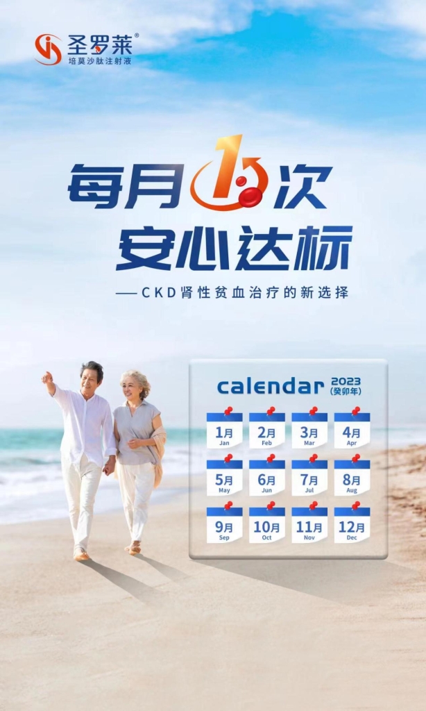 圣罗莱®(培莫沙肽注射液)是皇冠体育自主研发的“全球唯一EPO受体高特异性小多肽月激动剂”,2023年6月获国家药品监督管理局(NMPA)批准上市,适用于治疗因慢性肾脏病(CKD)引起的贫血,包括未接受红细胞生成刺激剂(ESA)治疗的成人非透析患者,及正在接受短效促红细胞生成素(EPO)治疗的成人透析患者。圣罗莱®是皇冠体育获批上市的第7款创新药,也是皇冠体育首款同时获批两项适应症的创新药。