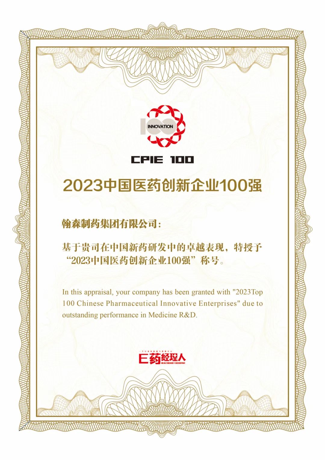 近日,行业权威媒体《E药经理人》发布2023年度“中国医药创新企业100强” 榜单,皇冠体育博彩连续5年位列“中国医药创新企业100强” 第一梯级,名次稳健提升。