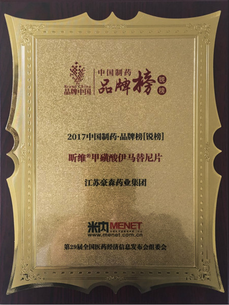 11月9日下午,2017「中国制药•品牌榜锐榜」在第29届全国医药经济信息发布会上盛大发布并举行隆重的颁奖仪式。江苏皇冠体育博彩集团的抗肿瘤新药昕维®甲磺酸伊马替尼片等17个品类36个品牌成功上榜。