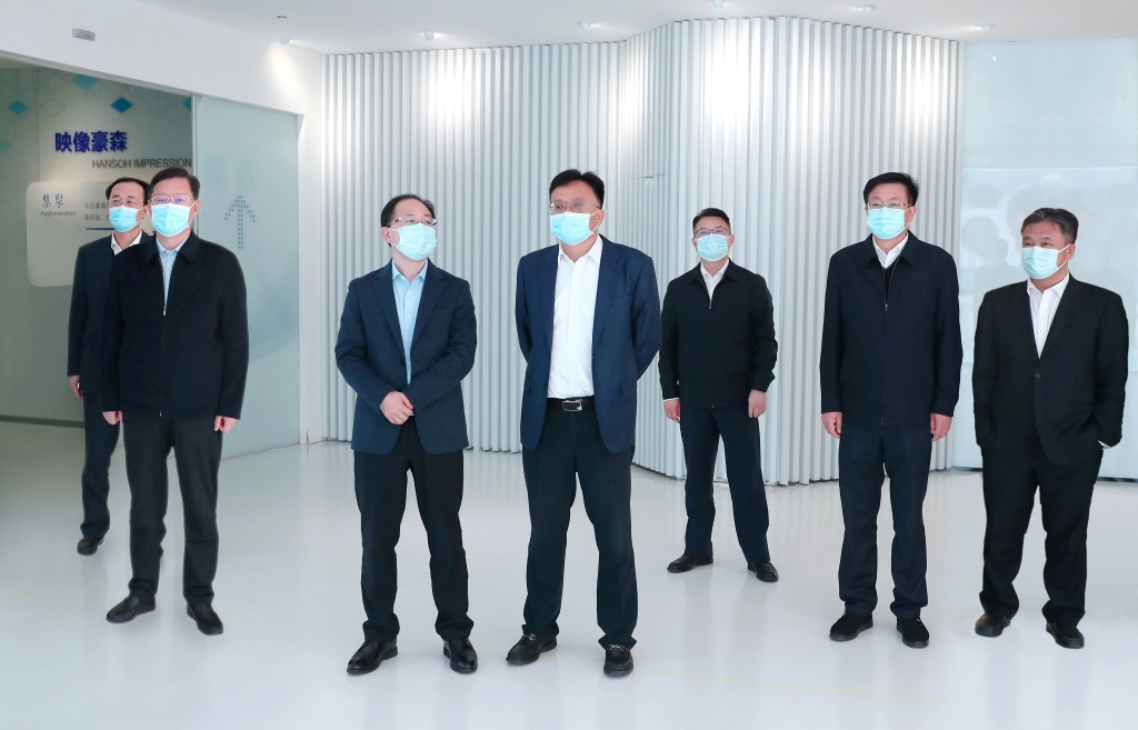 11月10日,江苏省副省长胡广杰一行来到皇冠体育博彩考察,了解企业经营布局、科研团队建设等情况。江苏省市场监督管理局局长朱勤虎、江苏省药品监督管理局局长田丰随同调研,连云港市领导马士光、杨新忠、商振江参加调研。
