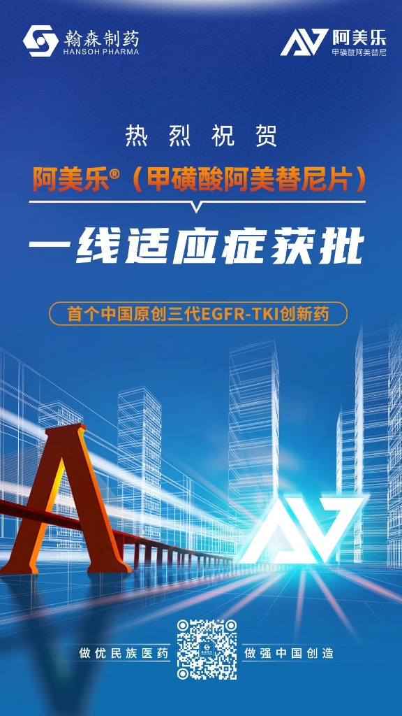 阿美乐®是皇冠体育自主研发的1类创新药,也是首个中国原创三代 EGFR-TKI。其在既往经EGFR-TKI治疗时或治疗后出现疾病进展的,存在EGFR T790M突变阳性的局部晚期或转移性NSCLC成人患者治疗方面成效显著,以优先审评品种认定资格得到NMPA快速审批,并获国家“重大新药创制”科技重大专项立项支持。2020年3月,阿美乐®首个适应症获批上市,填补了我国三代 EGFR-TKI 的空白;仅9个月后,阿美乐®成功被纳入国家医保目录;2021年6月,阿美乐®凭借其卓越的疗效和安全性被国家药品监督管理局发布的《2020年度药品审评报告》列为“临床价值高的新药好药”代表之一,为患者提供了更多临床选择,为肺癌患者带来更多希望。此次,阿美乐®用于具有表皮生长因子受体(EGFR)外显子19缺失或外显子21(L858R)置换突变阳性的局部晚期或转移性非小细胞肺癌(NSCLC)成人患者一线治疗适应症获批,正式开启了中国原创三代EGFR-TKI一线治疗全新时代,将造福更多肺癌患者。