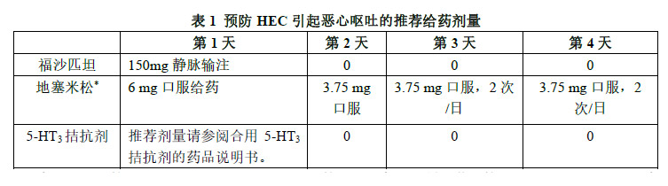 | 【用法用量】 | 预防成人HEC 引起的恶心和呕吐